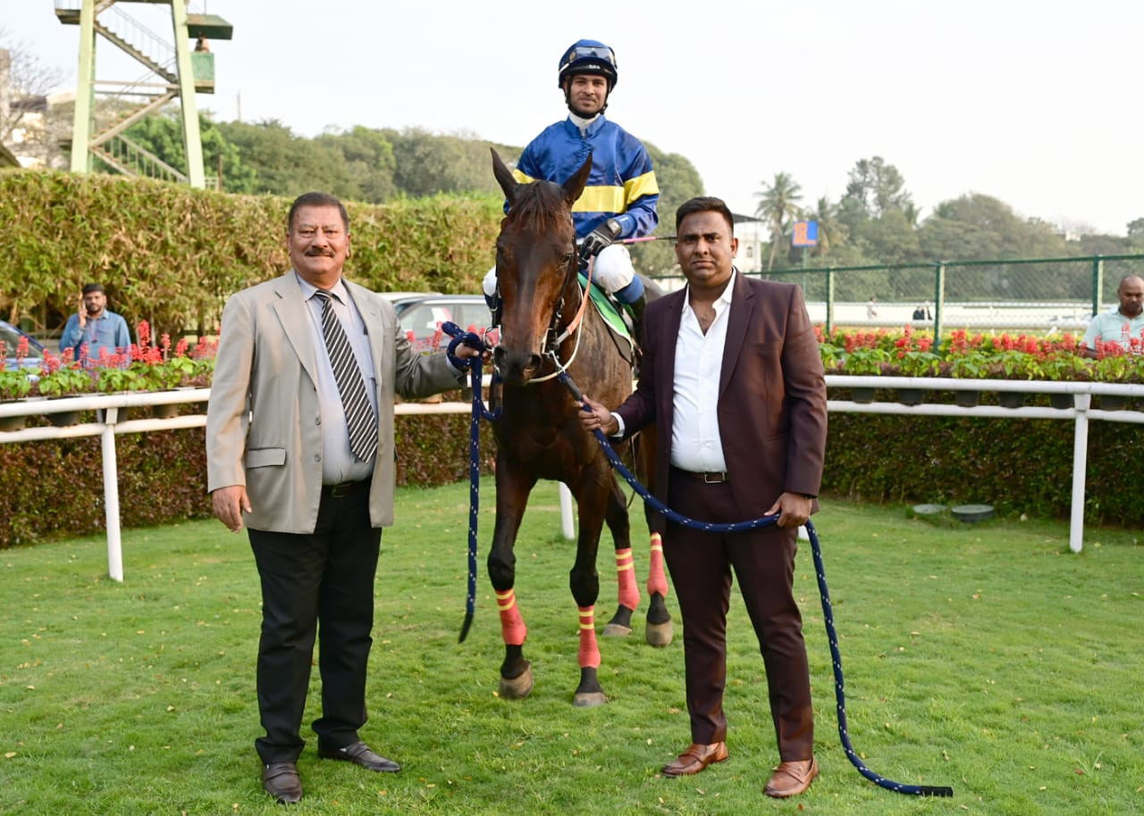 PLEDGE (R Pradeep), AUGUSTO (Arvind Joshi) and JOLIE`S STAR (C Umesh) in 1-22s; from 1,200m to 600m 40s. All jumped out well. They were separated by 3 la and 5 lengths.