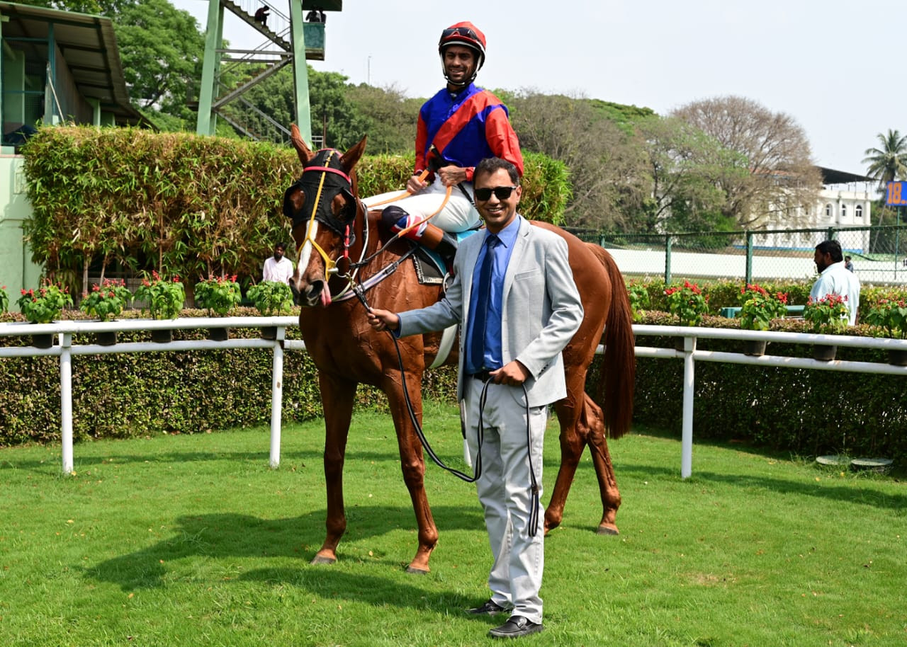 CORINTHIAN (Trevor Patel), STELLANTIS (R N Darshan), MYSTICAL AIR (Akshay Kumar), KRYSTALLOS (Shreyas Singh) and GLAZE (M Rajesh Kumar) in 1-29s; from 1,200m to 600m 50s. All jumped out well. They were separated by 2 ls, a length, 3 ls and 6 lengths.