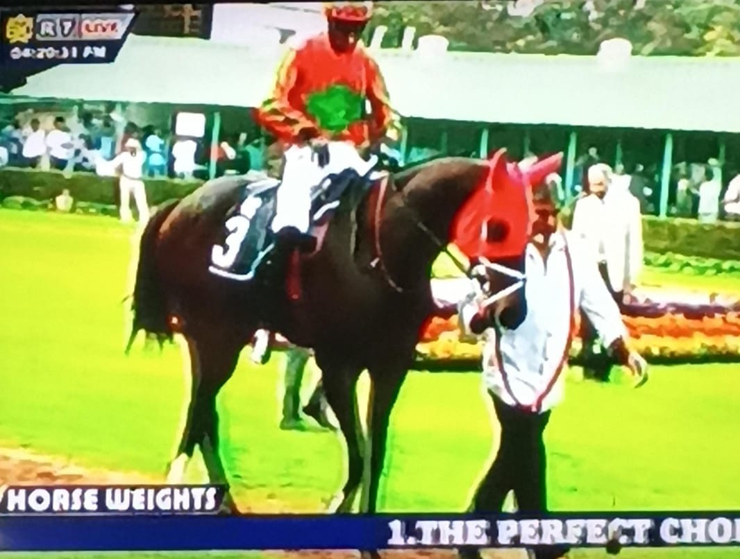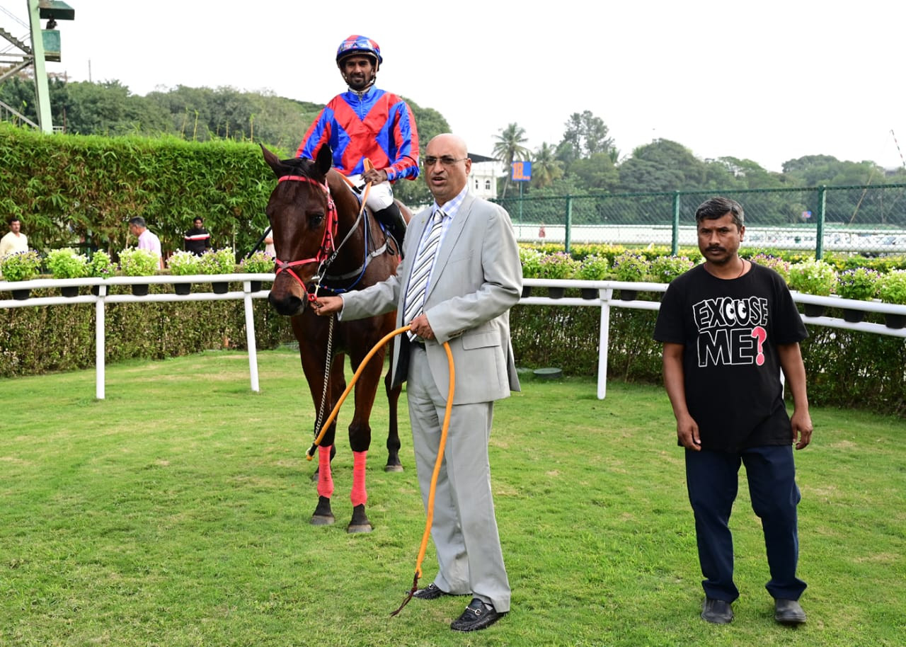 NEVER GIVE IN (Saddam Hussain), ARALINA (Antony Raj), DENSETSU (Soufyane J Moulin), VAL D’ARAN (P Vikram) and SLAINTE (Ritesh Gochhi) in 1-17s; from 1,200m to 600m 38s. All jumped out well. They were almost level.