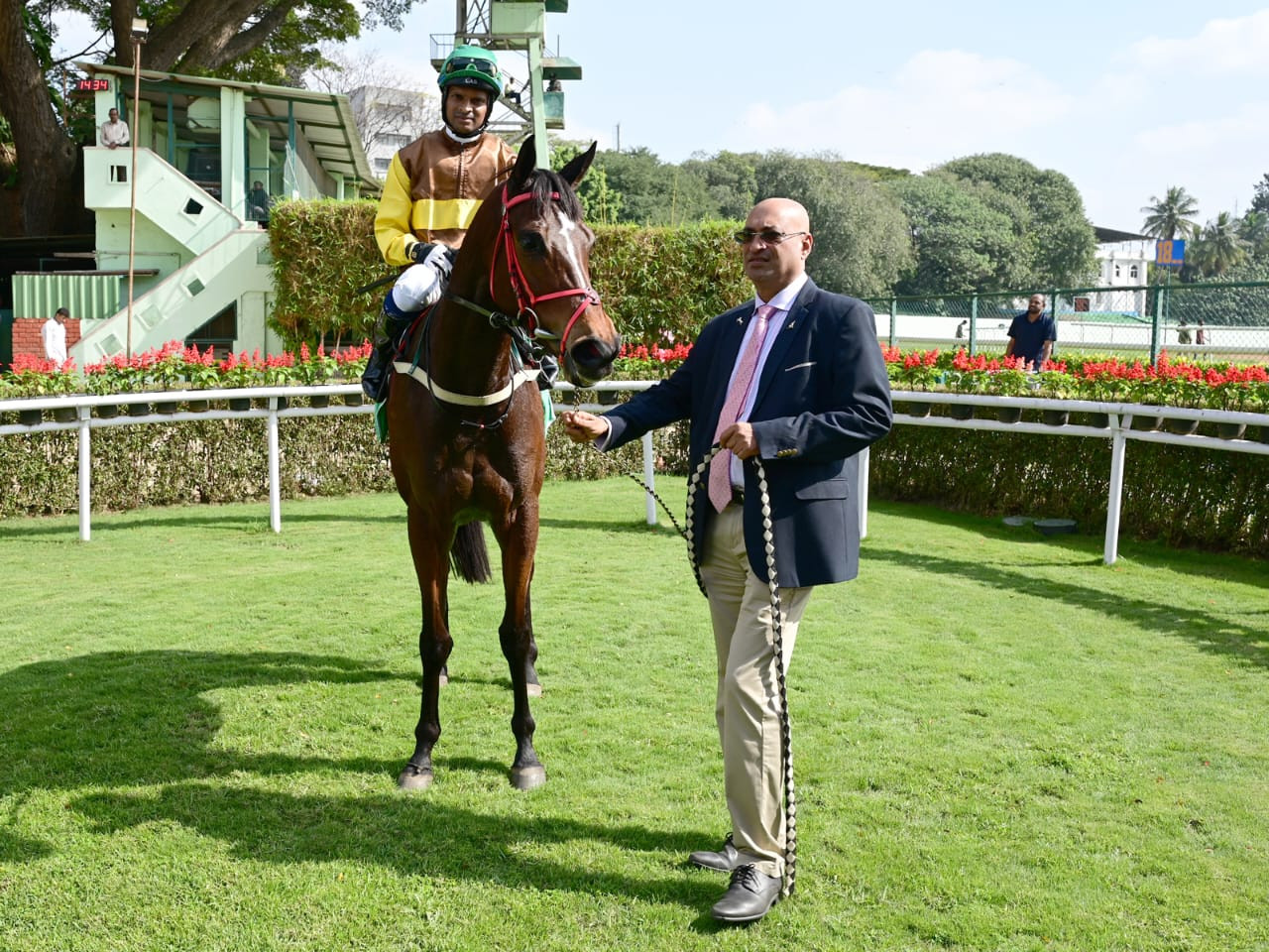NEVER GIVE IN (Saddam Hussain), ARALINA (Antony Raj), DENSETSU (Soufyane J Moulin), VAL D’ARAN (P Vikram) and SLAINTE (Ritesh Gochhi) in 1-17s; from 1,200m to 600m 38s. All jumped out well. They were almost level.