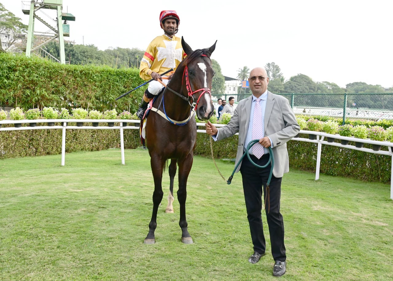 ALDILA (Saddam H) and BLUE GOD (Antony Raj) in 1-31s; from 1,200m to 600m 52s. Both jumped out well. They were level.