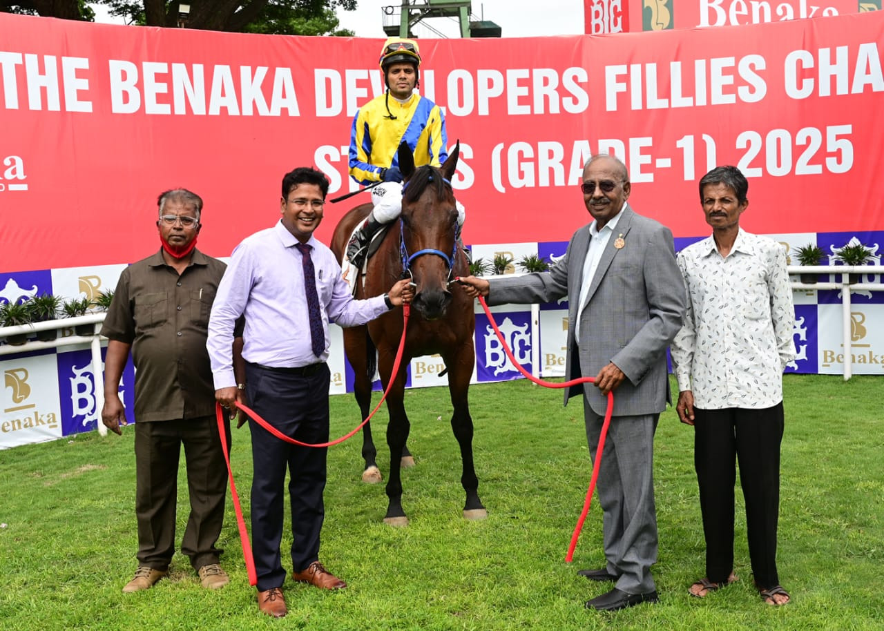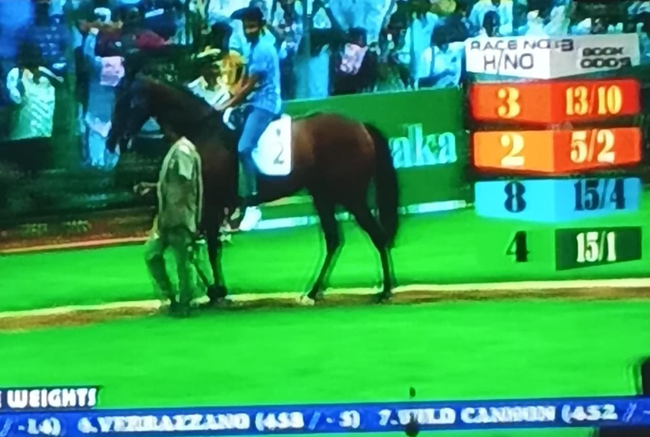 AMAZING STRIDE (Salman Khan) and DESERT GODDESS (Vinod Shinde) in 1-42s; (1,200m) 1-26s; (1,000m) 1-12s; (600m) 44s. The former was easily 4 ls better.