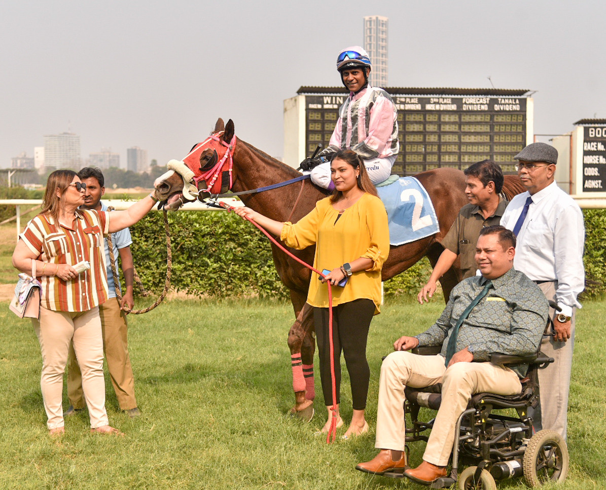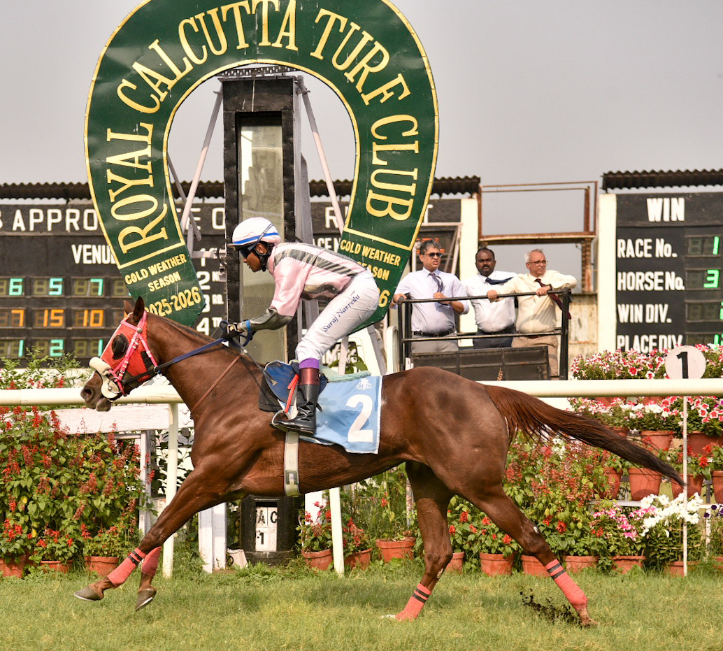 ALDILA (Imran Chisty) and SWIFT LADY (Kirtish Bhagat) in from 2,200m to 1,600m 13, 25, 44s. Both jumped out well. The former was a neck better.