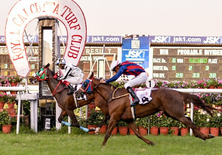RAISSA (Vinay Jaiswal) and WATCH MY STRIDE (Nikhil Naidu) in from in 2,000m to 1,400m 9, 23, 37s. Both jumped out well. The former was a length better.