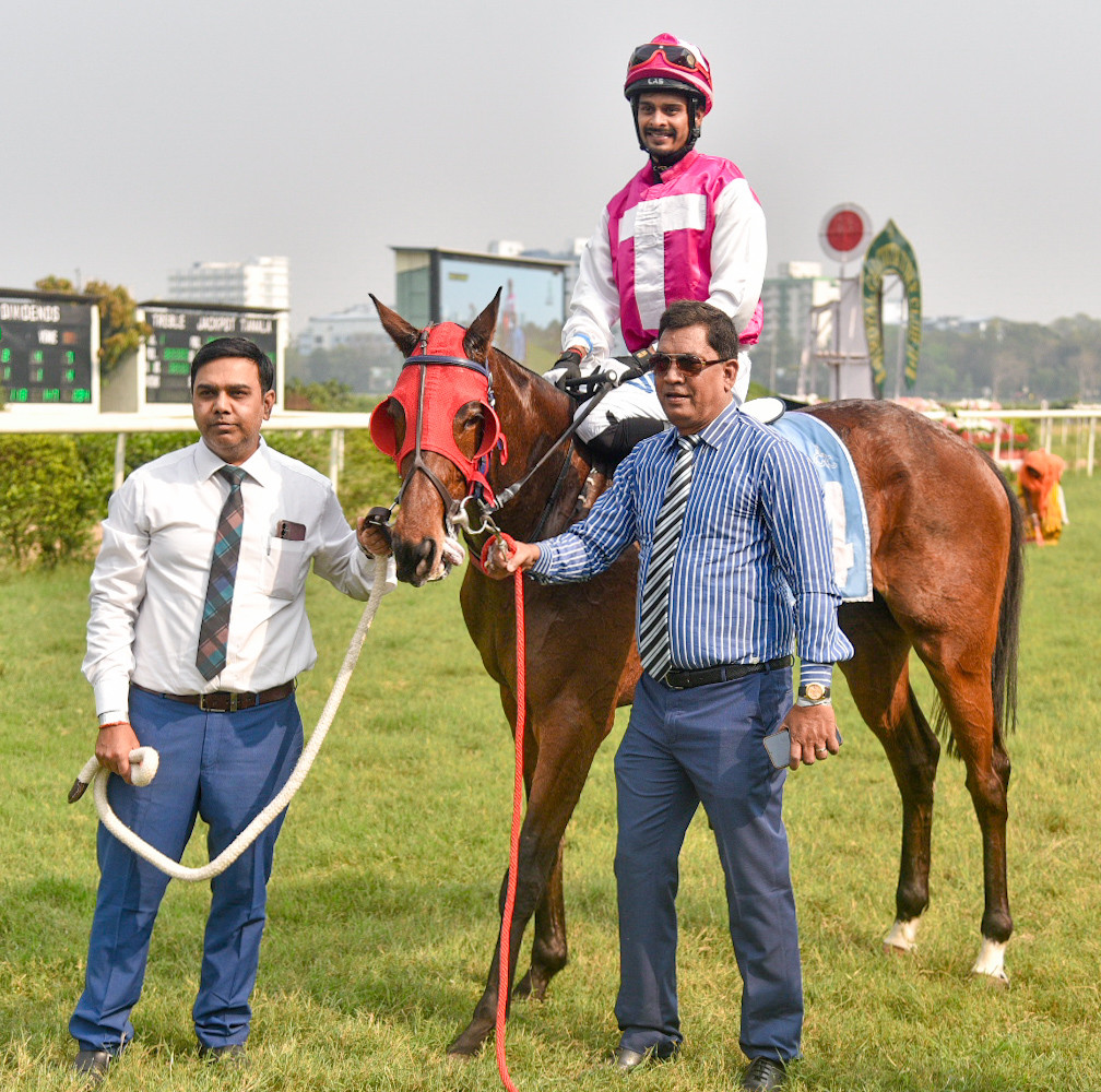SIMRAN`S ATTITUDE (Chethan Gowda) and TRUE FAITH (Rb) in 44s; (400m) 29s. The former was 6 ls better. The former worked well.