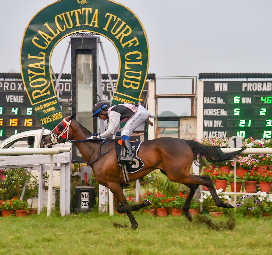 SULTANA (R S Bhati) and ENCHANTING (Sah Farid Ansari) in from 2,200m to 1,600m 13, 26, 41s. Both jumped out well.