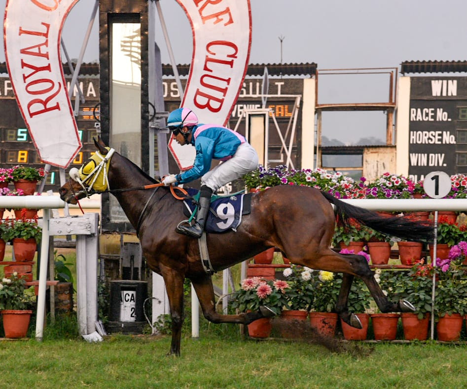 ALDILA (Imran Chisty) and KSEPIMAN (Kirtish Bhagat) in from 2,200m to 1,600m 13, 27, 43s. Both jumped out well. The former was a length better.