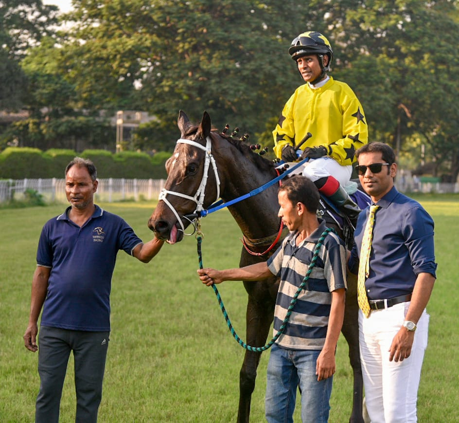 SUPER SAPPHIRE (Nikhil Naidu) in 7s; (600m) 42s; (400m) 27s. Moved well.