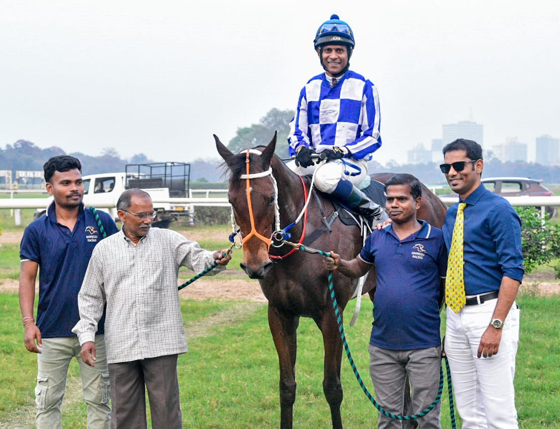 GORDON (Nikhil Naidu) and DANCE ALONG (Shezad Khan) in 1-59s; (600m) 47s; (400m) 31s. The former was easily 5 ls better.