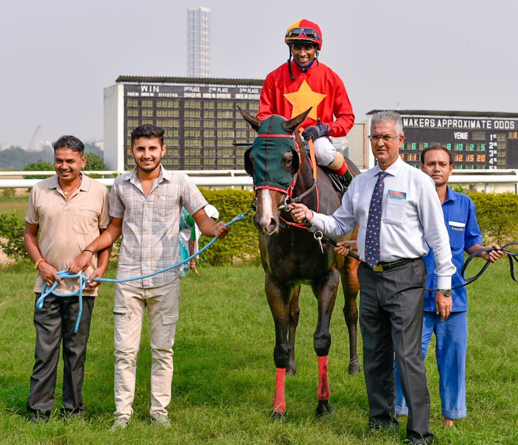 EAGLES FLIGHT (R Vaibhav) in from 2,200m to 1,800m 17, 37s. Jumped out well.