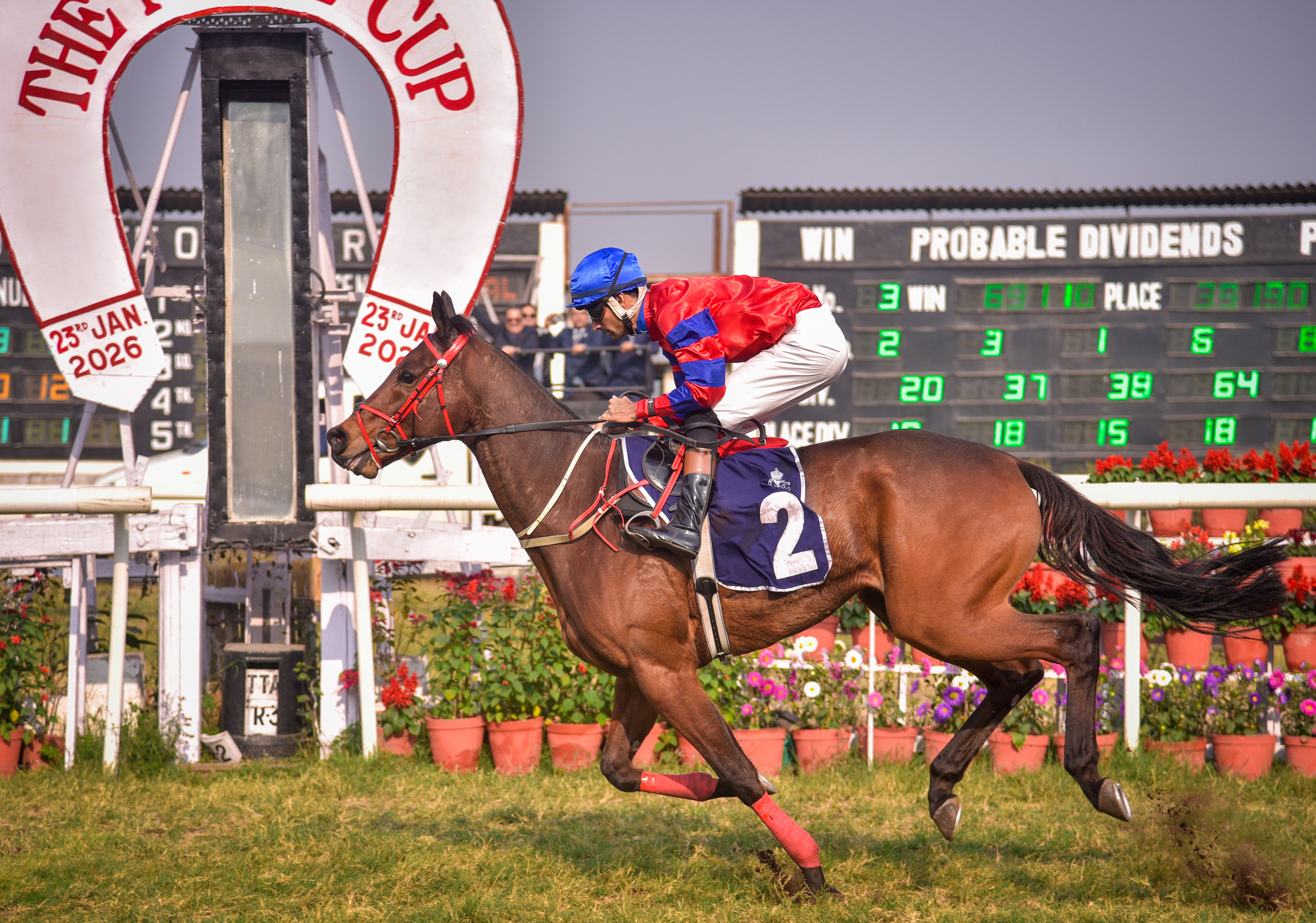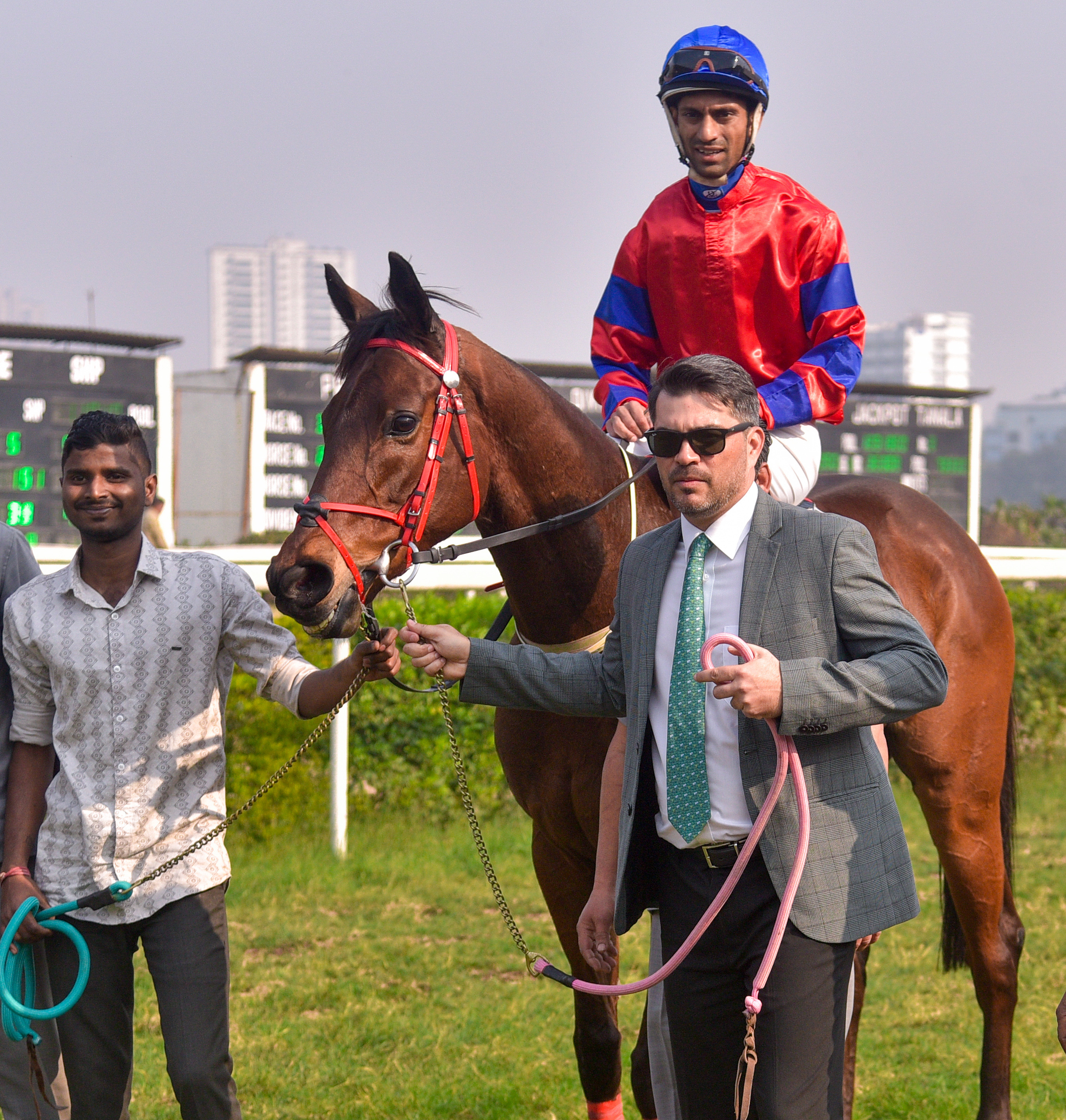 LAHINA (Vinay Jaiswal), EPIC PLAY (Chetan Gowda) and BRAVE MAJESTY (Rb) in from in 2,000m to 1,800m 16s., in from in 2,000m to 1,400m 12, 25, 39s. Jumped out well., out well, Former trounced later