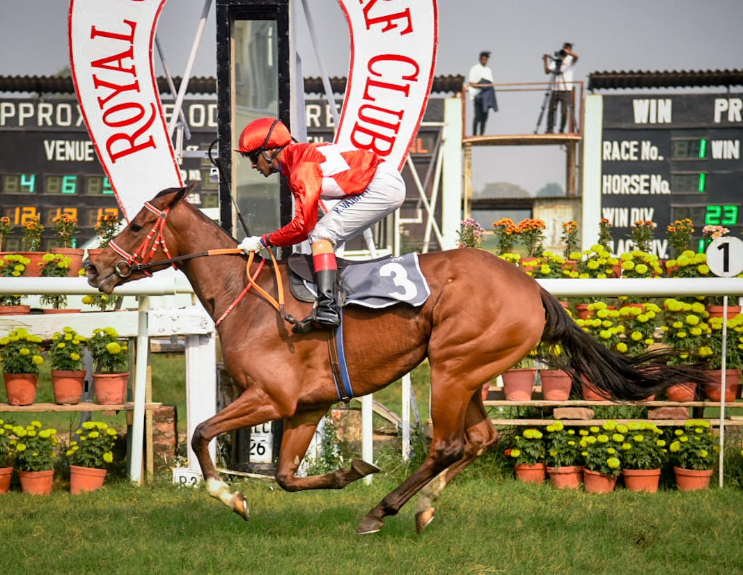 IMPRESSIVE ANNIE (Rb) and SKY FORCE (P Tejeshwar) in 1-59s; (600m) 48s; (400m) 33s. The former was 4 ls better.
