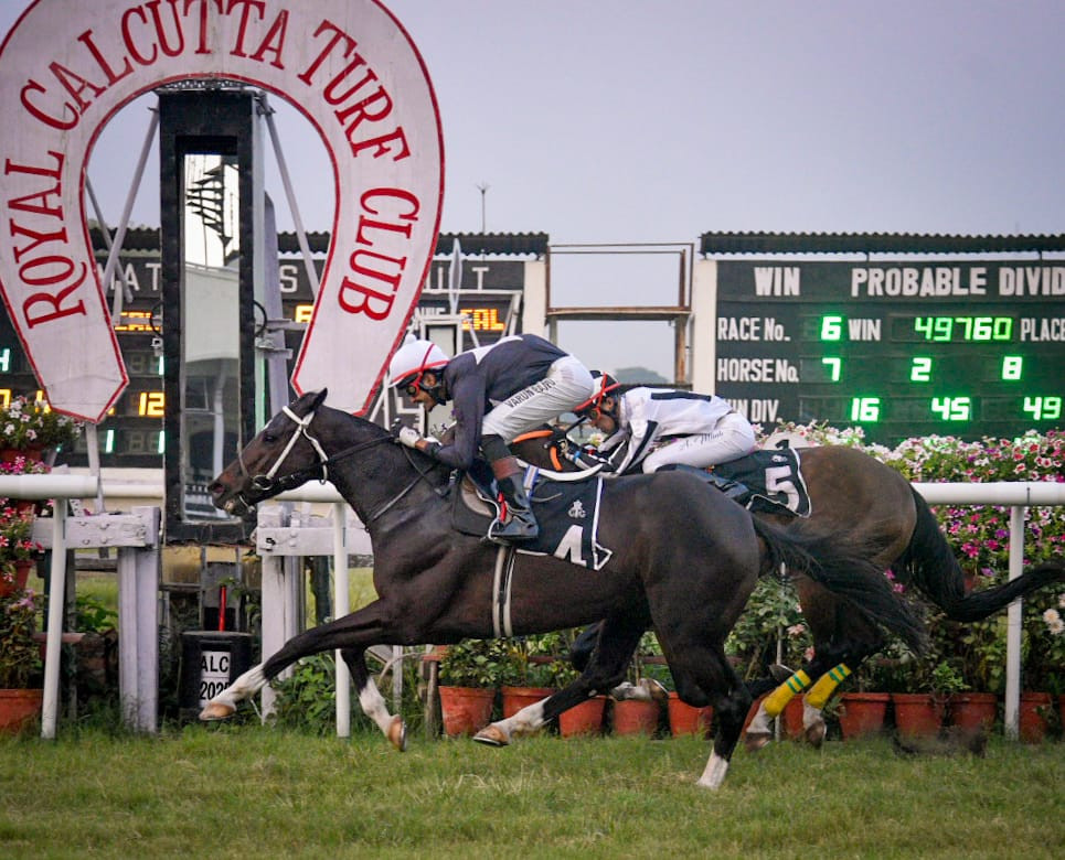 ZAMBEZI (R Shelar) and POWER RACER (Ankush) in from 2,200m to 1,600m 13, 26, 43s. Both jumped out well. The former was 2 ls better.