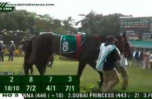 TRAKILA (P Tejeshwar) in 58s; (600m) 42s; (400m) 28s. Pushed.