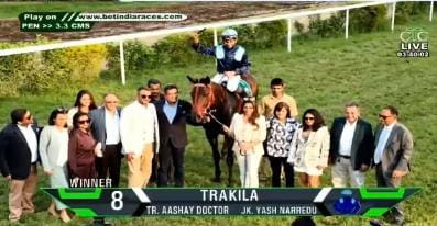 TRAKILA (P Tejeshwar) in 56s; (600m) 42s; (400m) 26s. Impressed.