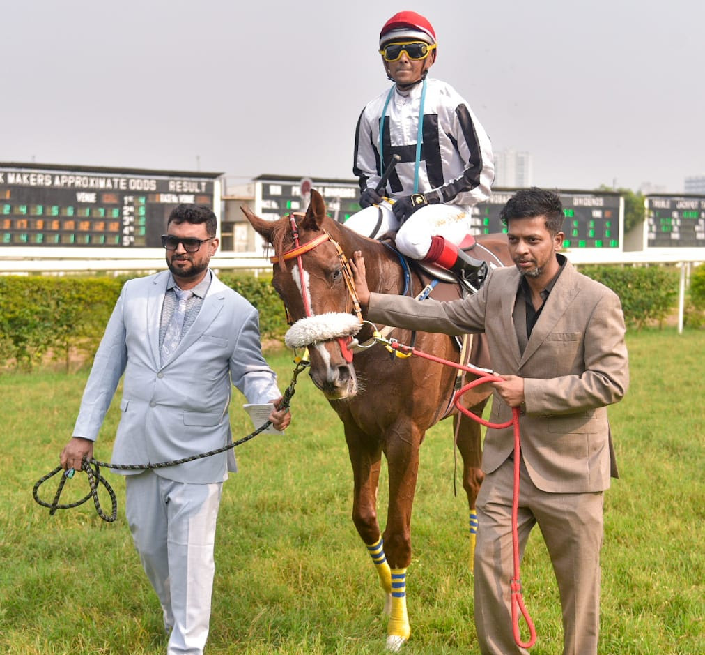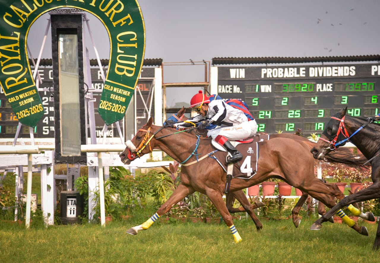 MENJOU`S MOUSTACHE (Shahrukh Khan) and LINEUPANDCOLLECT (P Bhagat) in from 2,000m to 1,400m 11, 23, 38s. Both jumped out well. The former was 4 ls better.