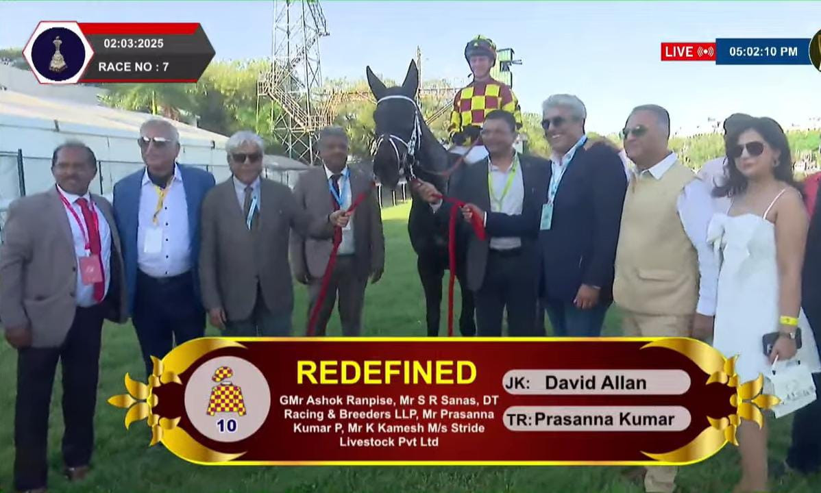 REDEFINED (Chethan Kalay) and RULING DYNASTY (Mudassar Nazar) in 1-40s; (1,200m) 1-24s; (1,000m) 1-8s; (600m) 39s. The former was 8 ls better.