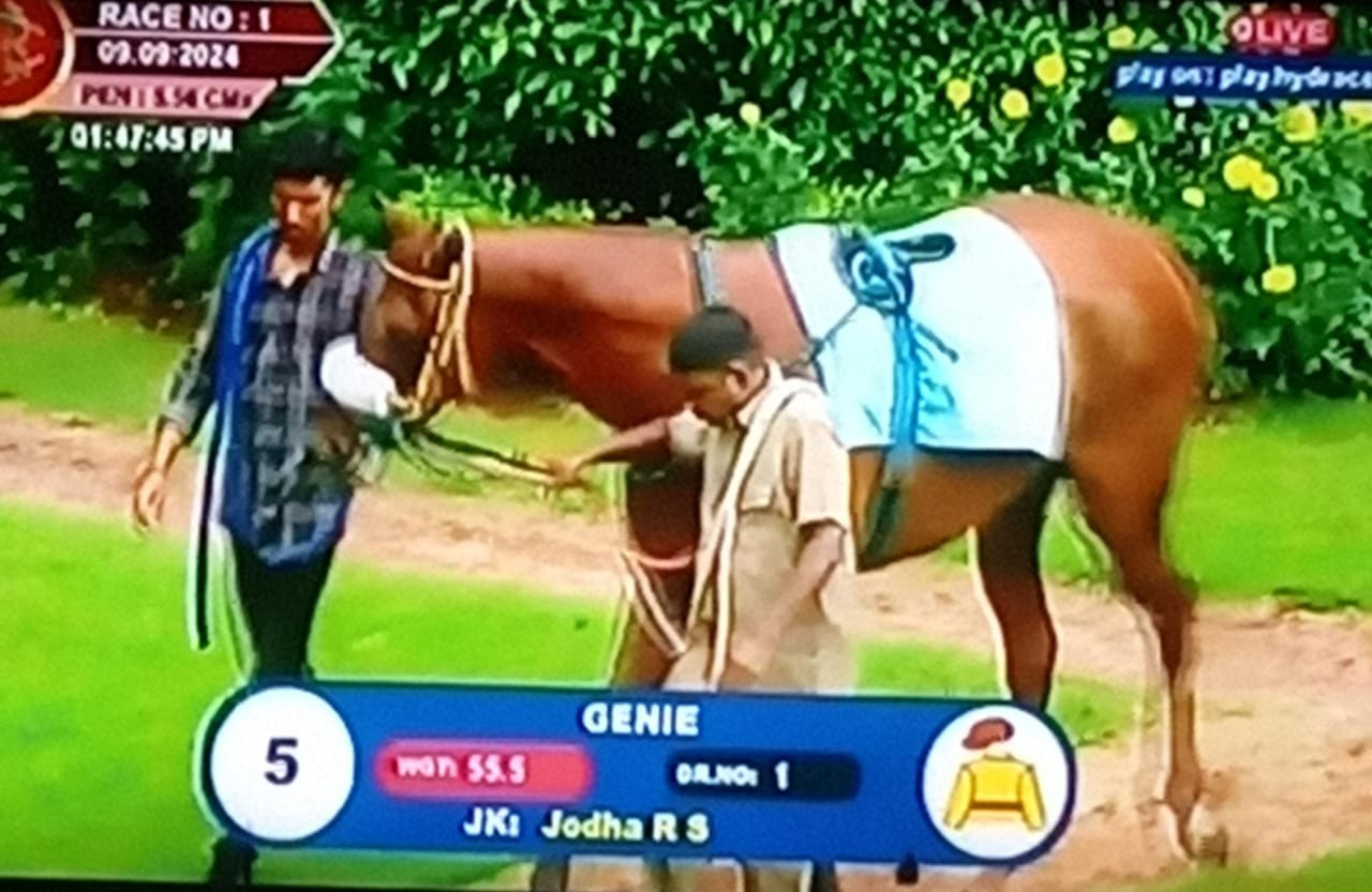 CHERIE CHEVALIER (G Naresh) and SANGREAL (Santhosh Raj) in 1-1s; (600m) 47s. They were level. Both were easy.