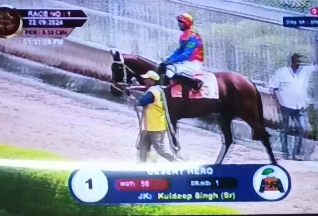 DUKE OF TUSCANY (Rb) and MAIGIRA (Deepak Singh) in 44s. They were almost level.
