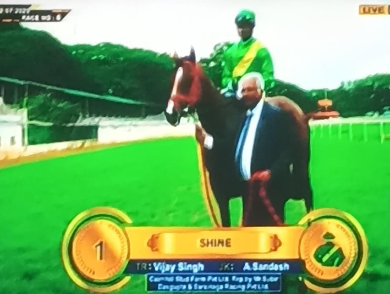 SHINE (Vinay Jaiswal) in 2-5s; (1,400m) 1-47s; (1,200m) 1-34s; (800m) 1-0s; (^00m) 45s; (400m) 31s. Moved well.