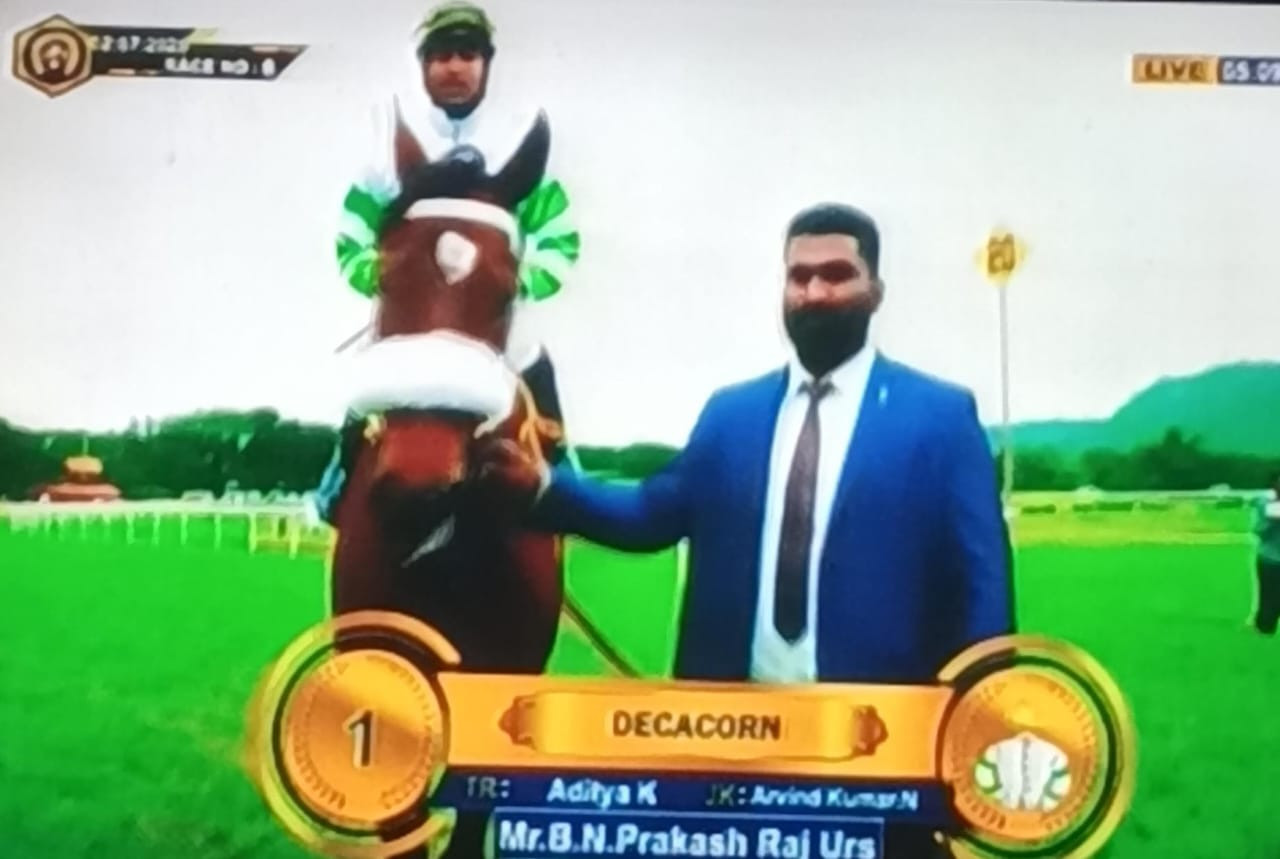 DECACORN (kadam) and HOWLIN WOLF (N S Parmar) in 1-22s; (1,000m) 1-8s; (800m) 55s; (600m) 42s. The former was a length better.