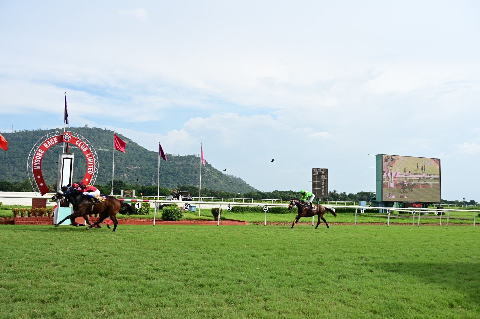 KNOTTY CHARMER (G Vivek), MASATO (Suraj Narredu) and RULING DYNASTY (Shamaz Shareef) in 1-29s; from 1,200m to 600m 47s. All jumped out well. They were separated by 3 ls and 5 lengths.