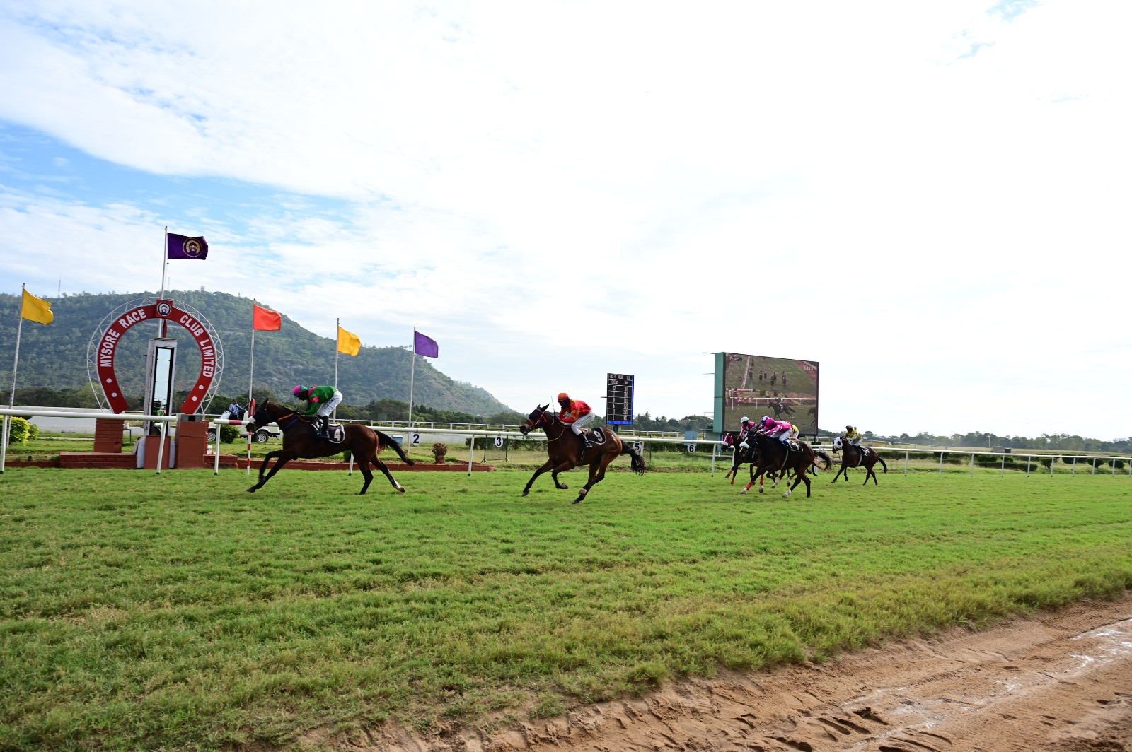 SEA THE SUN (R Shiva Kumar), D GOLD STAR (C Bramesh), THE FLYING FEET (Ajeet Kumar) and MARZGOVEL (GautamRajUrs) in 1-12s; (600m) 37s. All jumped out well. They were separated by a length, 3/4 length and 3.4 length.