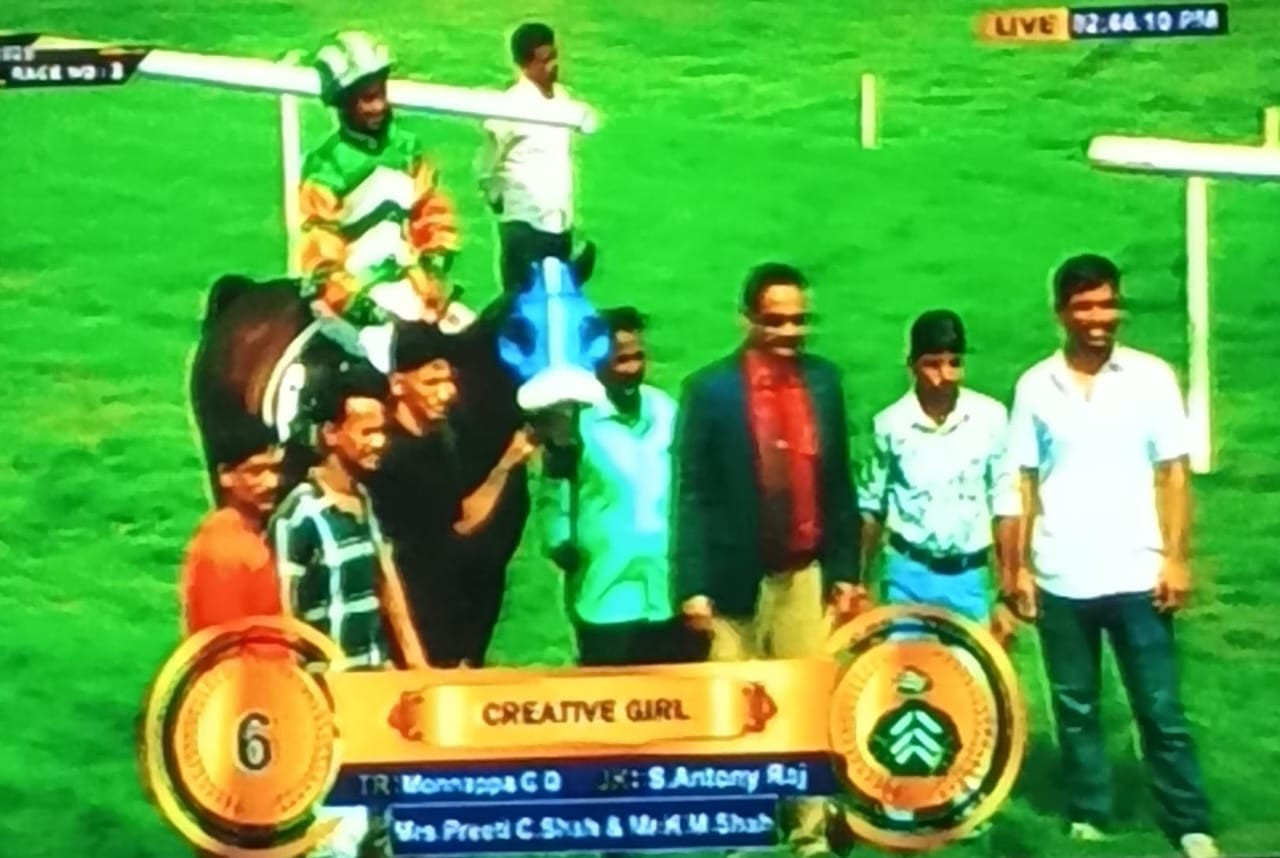 CREATIVE GIRL (Vishal N Bunde) and MUTANT (Ishwar Pardeshi) in 1-6s; (800m) 52s; (600m) 39s. The former was easily 3 ls better.