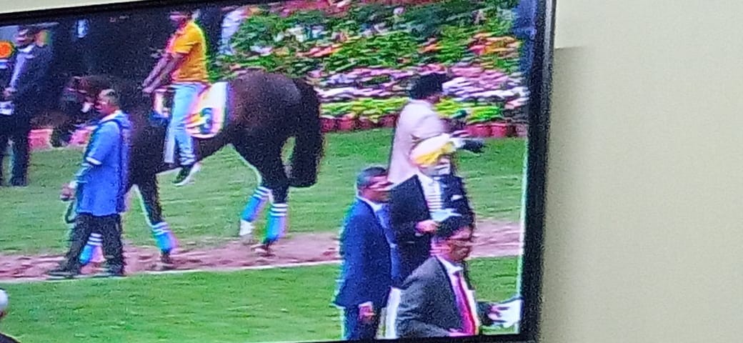 CHAMPIONS WAY (Vinod Shinde) and TOUCH OF GREY (Suraj Narredu) in 1-22s; 1,200m to 600m 40s. They jumped out well.