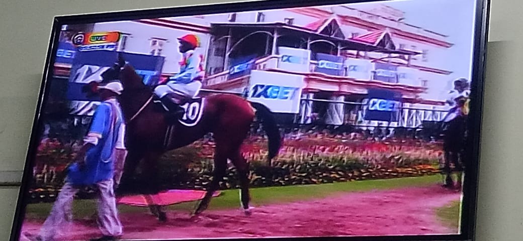 NEVER GIVE IN (Saddam Hussain), ARALINA (Antony Raj), DENSETSU (Soufyane J Moulin), VAL D’ARAN (P Vikram) and SLAINTE (Ritesh Gochhi) in 1-17s; from 1,200m to 600m 38s. All jumped out well. They were almost level.