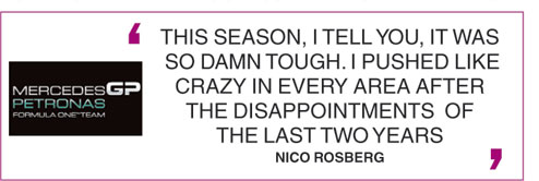 "When I won the race in Suzuka, from the moment when the destiny of the title was in my own hands, the big pressure started and I began to think about ending my racing career if I became world champion. On Sunday morning in Abu Dhabi, I knew that it could be my last race and that feeling cleared my head before the start. I wanted to enjoy every part of the experience, knowing it might be the last time... and then the lights went out and I had the most intense 55 laps of my life.