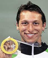 | Thorpe (with the 400m gold above) achieved a historic treble |