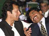 | THOSE WERE THE DAYS: Imran Khan and Javed Miandad share a light moment |