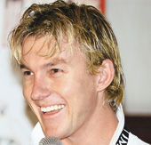 | Brett Lee at a press meet in the city on Monday. Picture by Pabitra Das |