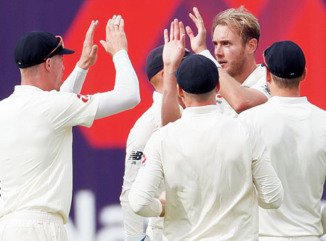 England pace battery, led by Stuart Broad, gobbled up half the Indian batting line-up under favourable overcast conditions as the visiting batsmen were either reckless with their shot selection or victim of good deliveries.