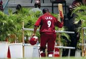 | Brian Lara walks back after being run out for 36 in Port-of-Spain on Sunday, possibly his final ODI on home turf. (Reuters) |
