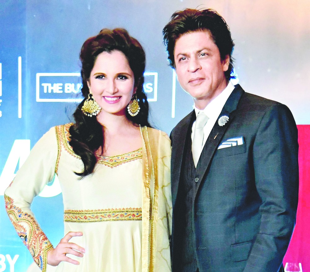 Sania Mirza and Shahrukh Khan during the release of Ace Against Odds, an autobiography of the tennis star, in Hyderabad on Wednesday. “She is the rani of racquet,” the superstar said. (Below) John Abraham and Vijender Singh during a