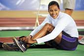 | Marion Jones after qualifying for the long jump final at the US Olympic trials in Sacramento on Monday |