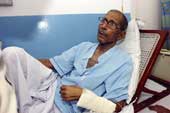 | Former Indian footballer Kajal Mukherjee in a city hospital on Tuesday. Picture by Santosh Ghosh |
