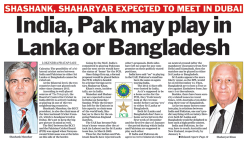 Monday's developments confirm the November 21 report in this newspaper, headlined 'India, Pak may play in Lanka or Bangladesh'.