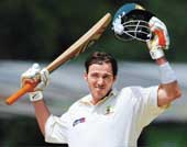 | Damien Martyn after completing his century in Kandy on Thursday |