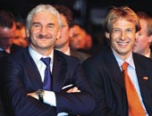 | File picture of Juergen Klinsmann with Rudi Voeller, who he replaced as German coach |