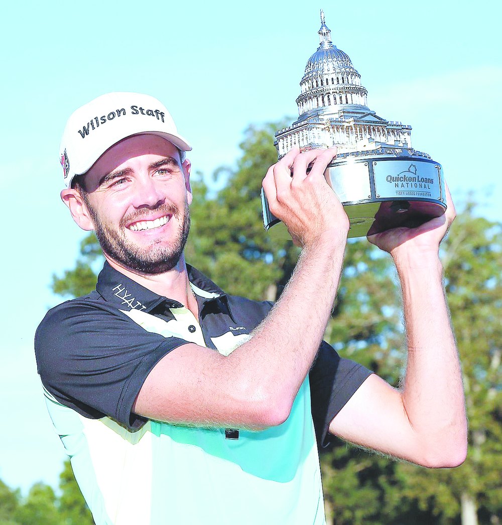 Los Angeles: Troy Merritt held firm and finished with a flourish to claim his first PGA Tour title with a three-stroke win on Sunday at the Quicken Loans National at Robert Trent Jones Golf Club in Gainesville.