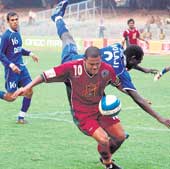 For the glamour side, the one moment of glory came in 25th minute. Mehrajuddin Wadoo, Manas Das, Jose Barreto and Bhaichung showed perfect co-ordination to give their team a much-deserved 1-0 lead. From a Mehrajuddin cross, Manas’ right-footer and Barreto header, Bhaichung netted it sharp. But their glory just lasted 11 minutes.