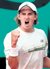 | Igor Andreev of Russia exults after beating Marcos Baghdatis of Cyprus at Roland Garros on Monday. (AFP) |