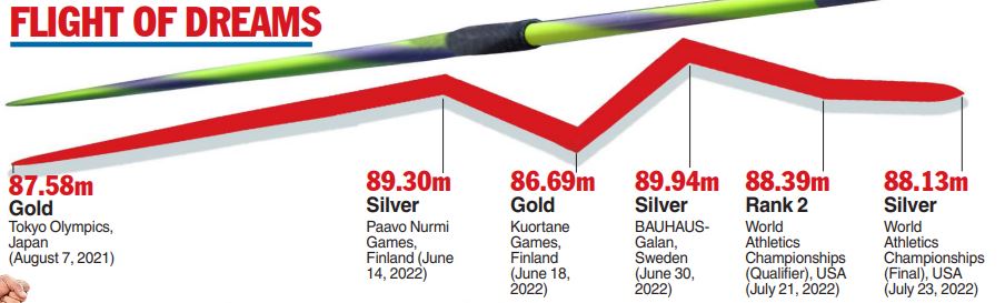 The customary exult, now-famous infectious smile and a thumbs-up sign to the screen followed. He knew he was back with a bang. As it turned out, it was enough to land him the silver even though it was way behind his personal best of 89.94 metres, achieved during the Stockholm Diamond League on June 30.