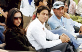 | Sourav Ganguly with Om Shanti Om stars Deepika Padukone and Shah Rukh Khan during the final ODI at the Sawai Man Singh Stadium on Sunday. While the superstar was in Jaipur to largely promote his new film, the buzz was that he was probably interested in owning one of the IPL teams. (AP) |