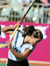 | Pakistan?s Shabbir Hussain tries to get past Germany?s Michael Purps in the Champions Trophy match on Saturday |