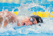 | Michael Phelps during the 200m freestyle at the World Aquatics Championships in Montreal on Tuesday. The American won the gold beating Grant Hackett to second place. (AP) |