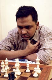 | 4-yr-old Mitrava Guha ponders over a move on Friday |